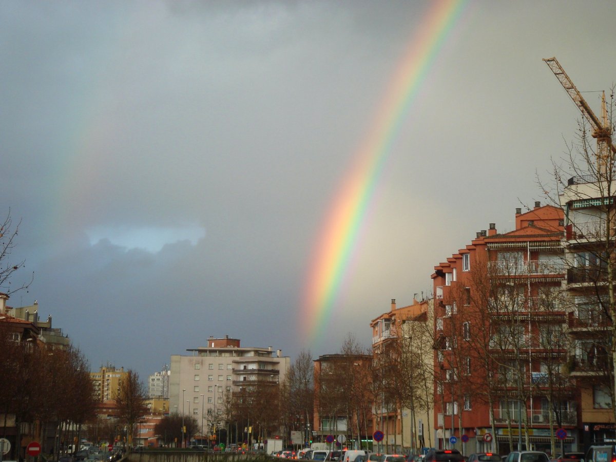 Un cop a destí, una ullada de sol ha estat suficient per a fer aparèixer un arc de Sant Martí, ràpid això si, perquè amb pocs minuts no ha deixat rastre. Almenys m’ha donat temps a baixar i fer-ne algunes fotos des del carrer Mistral amb Vilamarí.