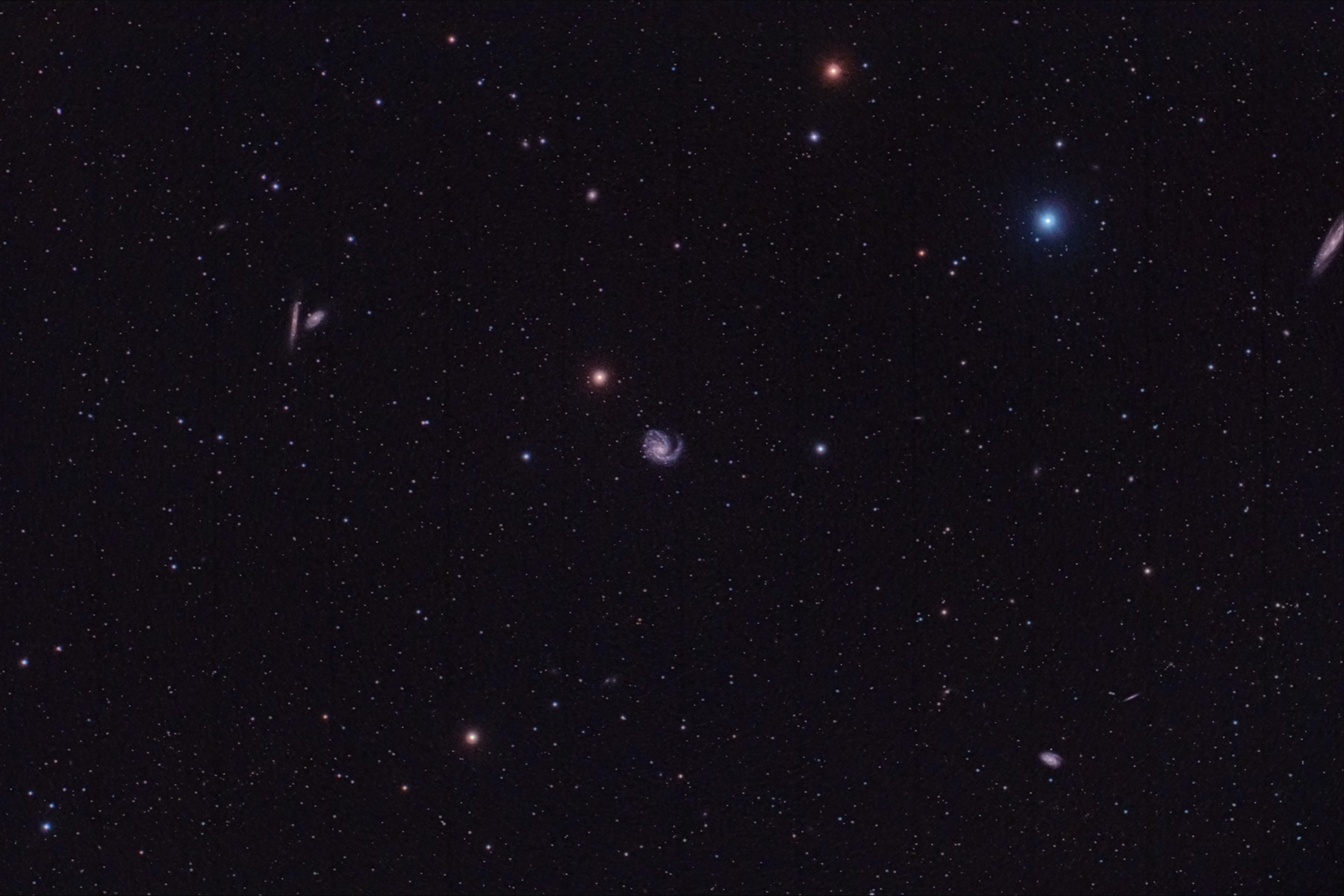 En aquesta imatge he acumulat 33 imatges de 5 minuts arribant a 2:45h, calibrat amb darks, flats i bias. La imatge està centrada M99, però al camp també apareixen un munt de galàxies, doncs es troba en ple cúmul de galàxies de Virgo.