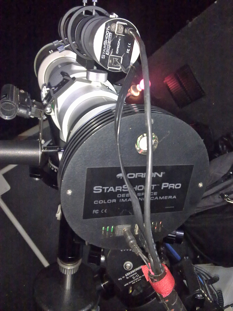 Càmeres CCD: Orion Starshot Pro color . 3000 x 2000 píxels. Càmera principal.Orion Starshot Solar System & Autoguider (SSPIAG). Usada per a fotografia planetària i solar.Orion Starshot Autoguider. Usada per autoguiat. |