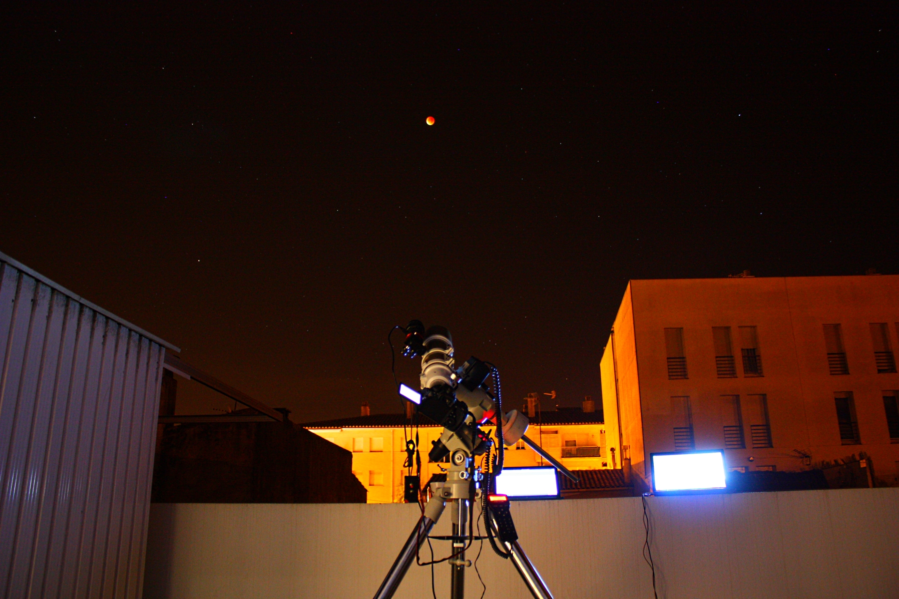 A les 2:00 sonava el despertador, just perquè l’eclipsi començava a les 2:12 la fase penumbral, però suficient per un cafè, vestir-me i cap a fora! Això de tenir la terrassa ben orientada ha estat un punt a favor!