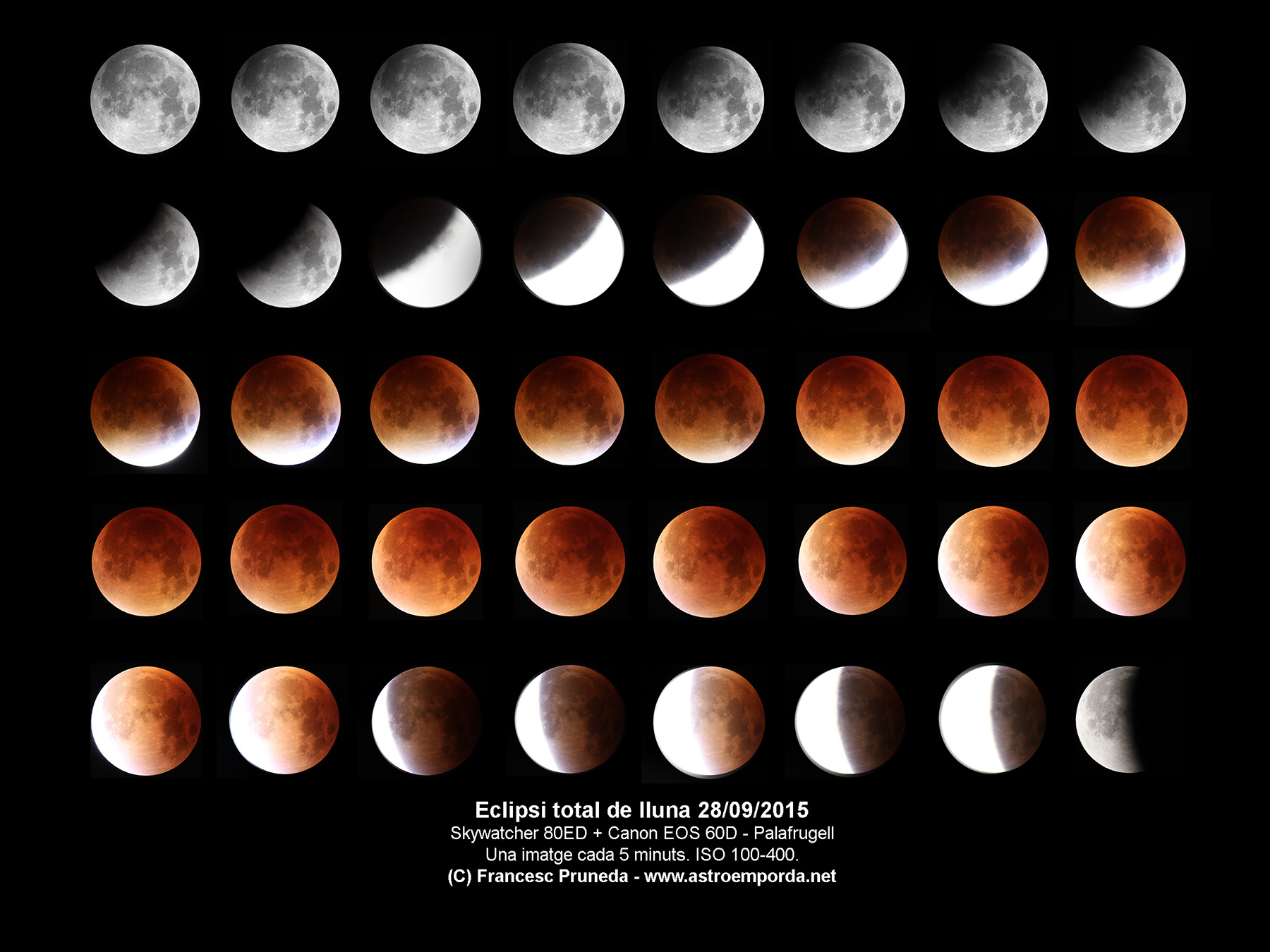 A partir d’aquí tot molt fàcil, cel clar, sense vent, molta gent participant activament (vam arribar a ser 110 persones!), internet no va fallar… perfecte! Fins i tot la meva parella es va llevar uns minuts a veure la “lluna de sang“, genial!